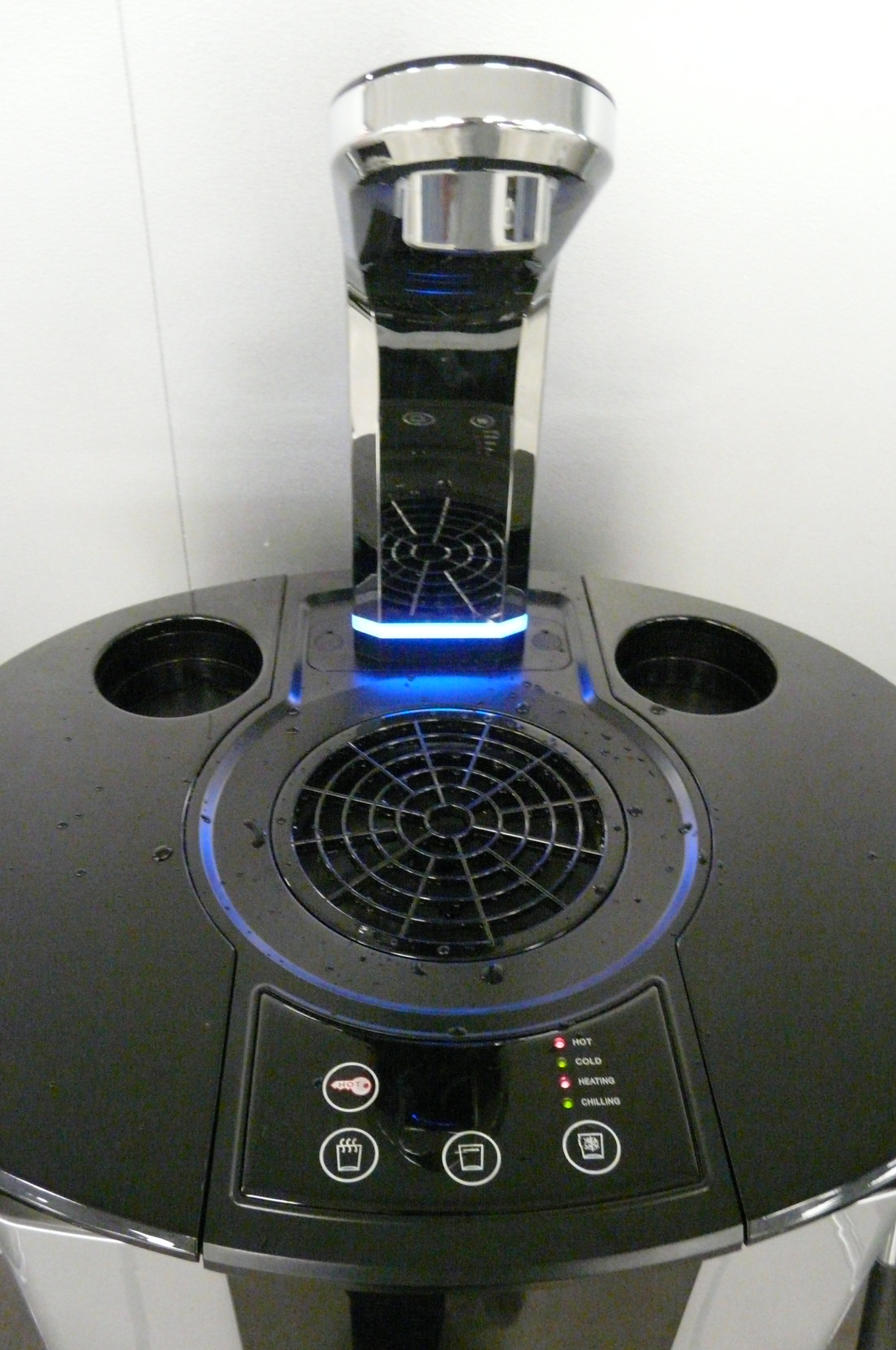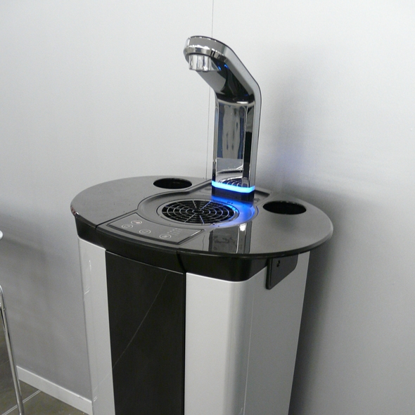Dispensador de agua conectado a la red con sistemas de producción de agua osmotizada caliente, fria y ambiente.