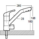 Grifo monomando cromado brillante con conexión 3/8” y tercer flexo 1/4”.