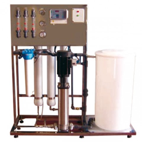- Incluye prefiltro 5 micras, presostato de mínima, electroválvulas de aporte y de arrastre, caudalímetro de permeado y recirculación, bomba de alta presión (paletas o vertical), membrana tipo TFC, regulador de rechazo, manómetros (tipo glicerina), válvula de regu-lación tipo punzón, estructura en inox, cuadro eléctrico con sinóptico y leds de funcionamiento (modelos E), centralita electrónica con conductivímetro (modelos Simply) y múltiples programaciones, etc.